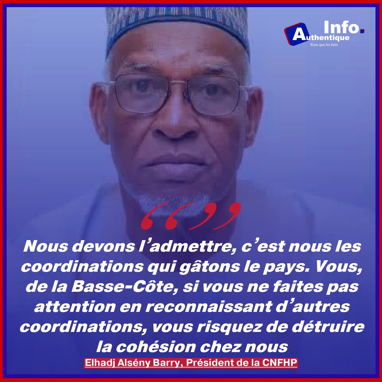 Devant les membres des différentes coordinations régionales et en présence du Premier imam de la Grande Mosquée Fayçal, Elhadj Mamadou Saliou Camara, le leader peul a reconnu la responsabilité potentielle des coordinations dans les tensions qui menacent la cohésion du pays.