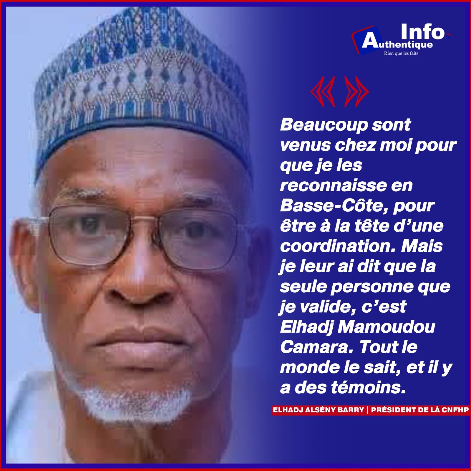 « Beaucoup sont venus chez moi pour que je les reconnaisse en Basse-Côte, pour être à la tête d’une coordination. Mais je leur ai dit que la seule personne que je valide, c’est Elhadj Mamoudou Camara. Tout le monde le sait, et il y a des témoins. »