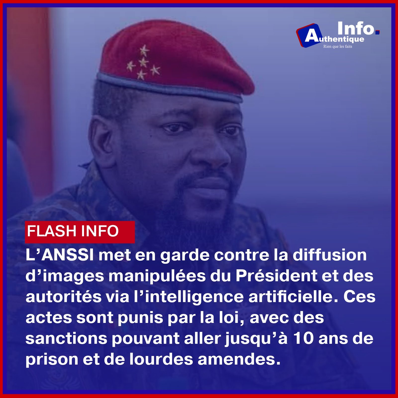 𝗟’ ANSSI Guinée 𝗮𝗹𝗲𝗿𝘁𝗲 𝘀𝘂𝗿 𝗹’𝘂𝘁𝗶𝗹𝗶𝘀𝗮𝘁𝗶𝗼𝗻 𝗱𝗲 𝗹’𝗶𝗻𝘁𝗲𝗹𝗹𝗶𝗴𝗲𝗻𝗰𝗲 𝗮𝗿𝘁𝗶𝗳𝗶𝗰𝗶𝗲𝗹𝗹𝗲 𝗽𝗼𝘂𝗿 𝗺𝗮𝗻𝗶𝗽𝘂𝗹𝗲𝗿 𝗲𝘁 𝗱𝗶𝗳𝗳𝘂𝘀𝗲𝗿 𝗱𝗲𝘀 𝗶𝗺𝗮𝗴𝗲𝘀 𝗼𝘂 𝘃𝗶𝗱𝗲́𝗼𝘀, 𝗻𝗼𝘁𝗮𝗺𝗺𝗲𝗻𝘁 𝗰𝗲𝗹𝗹𝗲𝘀 𝗱𝘂 𝗣𝗿𝗲́𝘀𝗶𝗱𝗲𝗻𝘁 𝗱𝗲 𝗹𝗮 𝗥𝗲́𝗽𝘂𝗯𝗹𝗶𝗾𝘂𝗲 𝗲𝘁 𝗱𝗲𝘀 𝗮𝘂𝘁𝗼𝗿𝗶𝘁𝗲́𝘀 𝗱𝗲 𝗹𝗮 𝗥𝗲́𝗽𝘂𝗯𝗹𝗶𝗾𝘂𝗲.