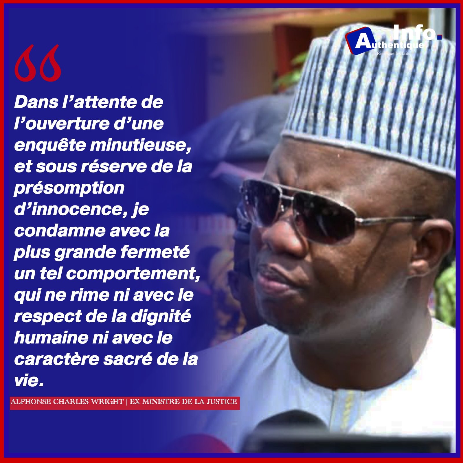 COMMUNIQUÉ OFFICIEL D’INDIGNATION ET DE COMPASSION DE MONSIEUR ALPHONSE CHARLES WRIGHT