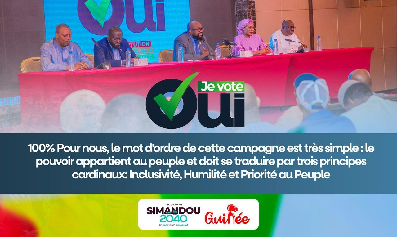 Appuyé par les Ministres des Infrastructures Laye Sekou CAMARA, de l’Industrie Dre Diaka SIDIBE, de l’Urbanisme Mory CONDÉ ainsi que de l’Hydraulique et des Hydrocarbures Aboubacar CAMARA, le Ministre Directeur de Cabinet a exhorté les fils et filles de la région administrative de kankan à transformer la consultation du 21 septembre 2025 en un moment solennel et fondateur, marqué par une participation massive en faveur du OUI.
